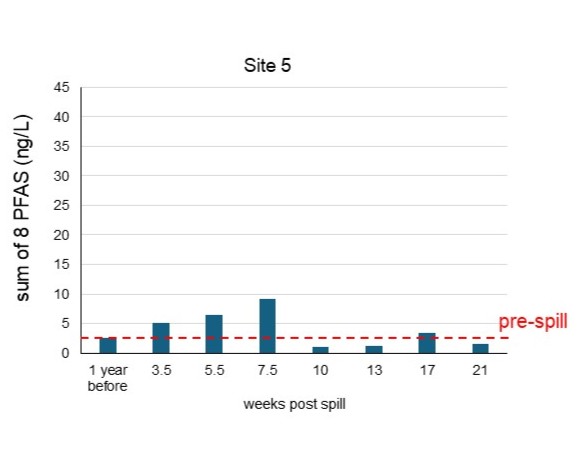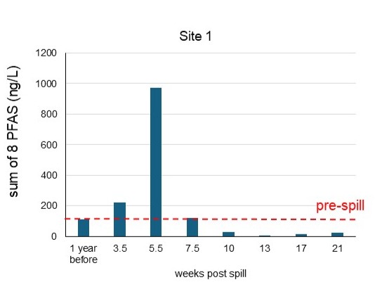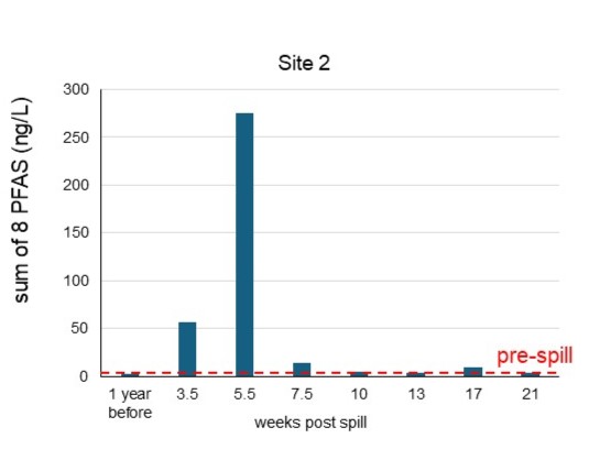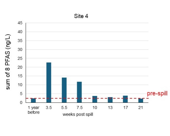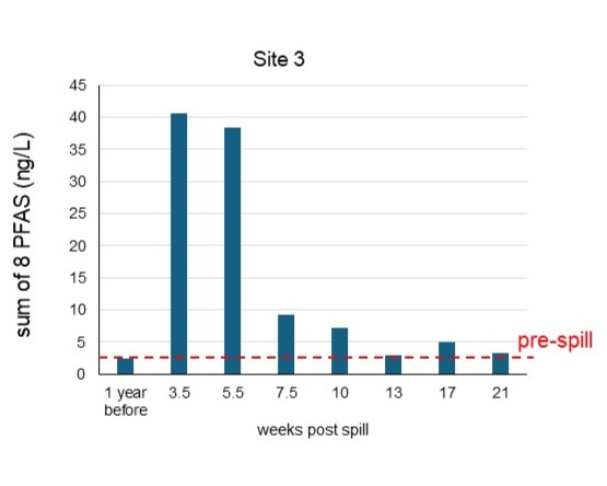 Because the study began before the spill, the team could track PFAS as it moved from Mere Brook into Casco Bay. Levels in Harpswell Cove returned to pre-spill levels after three months. Few studies have tracked PFAS in marine systems this way.