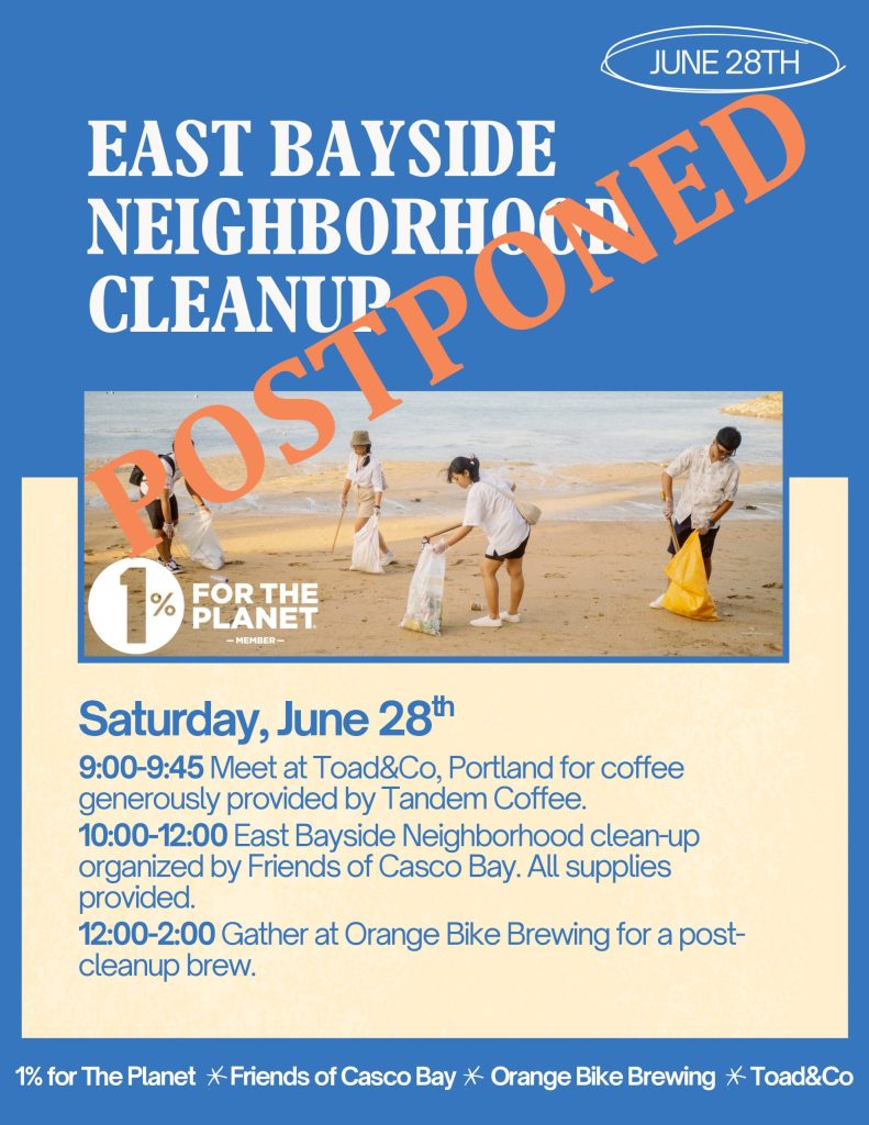 Join us for a cleanup with 1% for the Planet, a community cleanup of Portland’s beloved East Bayside neighborhood—part of the Casco Bay watershed.