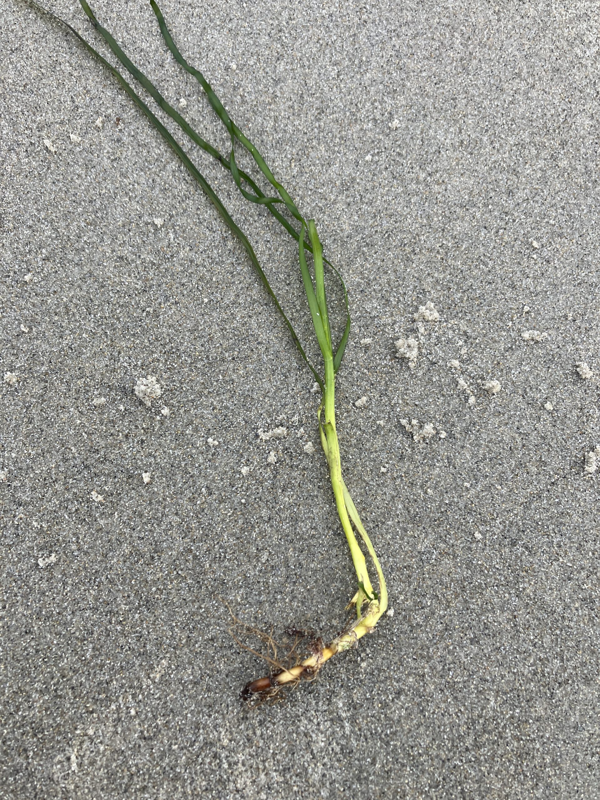Shredded roots are tell-tale signs of green crab damage to eelgrass beds.