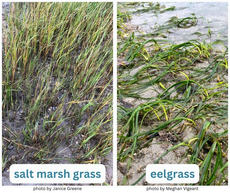 Think of salt marsh grass like uncooked spaghetti—stiff and upright. Eelgrass, on the other hand, is more like cooked linguine—soft, flat, and flowing.