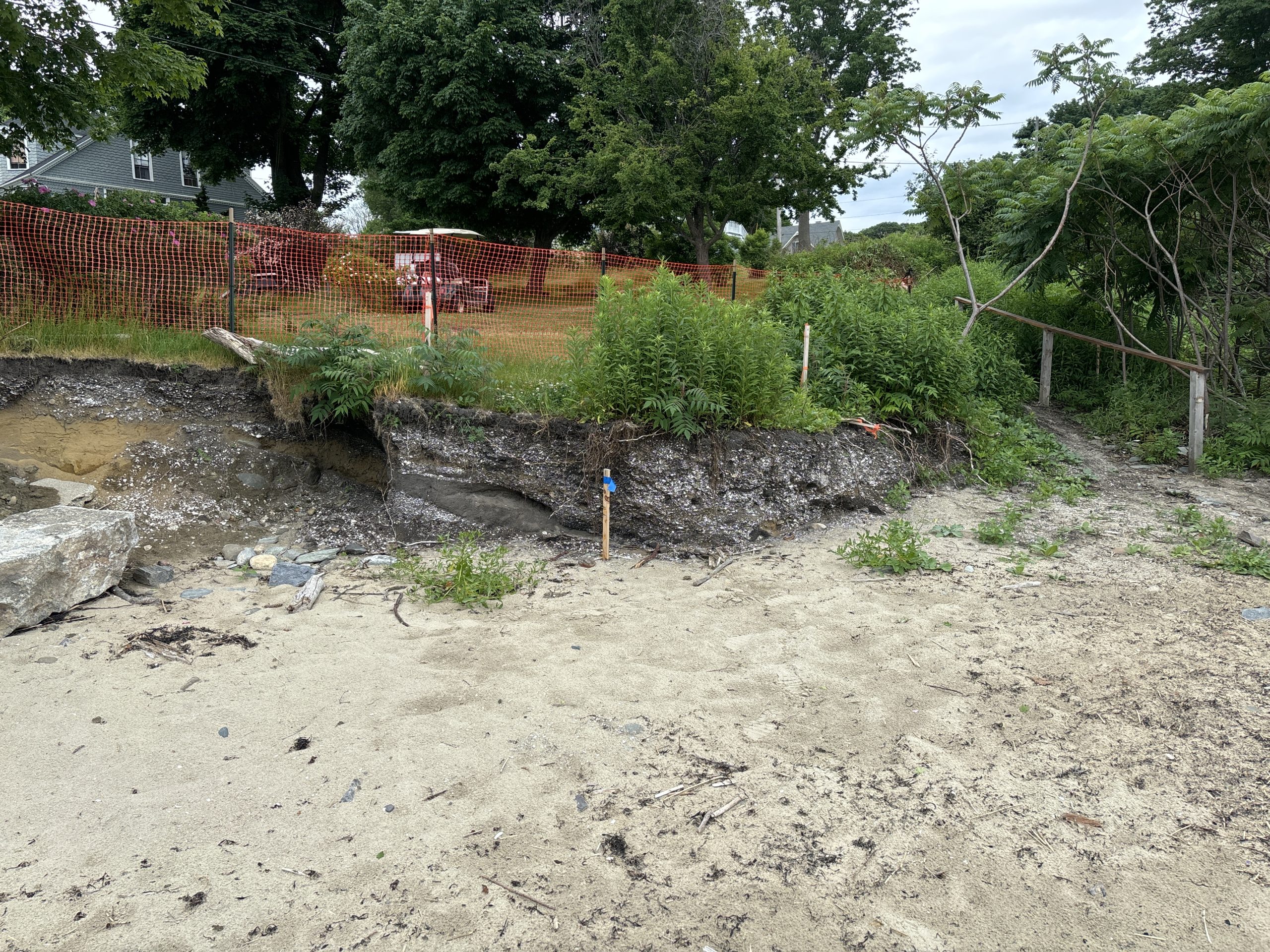 Most erosion happens during large storm events when there is a lot of rain, waves, or storm surge during a king high tide. Therefore, pay attention to when a storm is forecast and take a photo of vulnerable areas before the storm. After the storm is over, take a photo from the exact same spot. Upload both photos to Water Reporter.